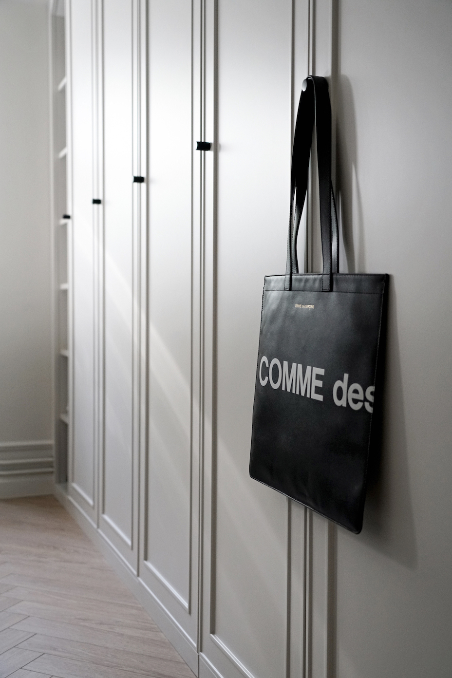 Högblanka vita dörrar med grepp till PAX stomme